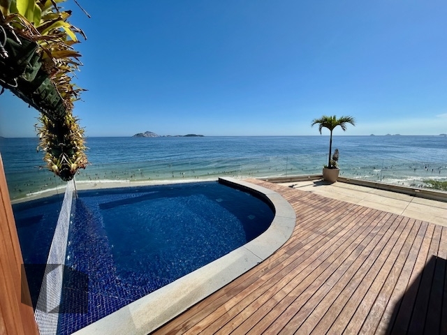 Cobertura Duplex no Arpoador verdadeiramente especial, inteiramente reformada, com uma das vistas mais impactantes do Rio, abrangendo o mar aberto, a Pedra do Arpoador e o Morro Dois Irmãos. Com 511 m², o imóvel se desenvolve em dois níveis que privilegiam conforto, integração e lazer. No primeiro pavimento, um living amplo e elegante recebe vários ambientes voltados para o mar, sala de jantar, além de lavabo, circulação com armários, ar condicionado Split em todos os ambientes, quatro suítes, incluindo uma master com closet, cozinha com armários planejados, elevador monta carga e climatizada, área de serviço e dependência completa. O pavimento superior é um convite ao lazer e à contemplação: Escada linear, sala de estar com adega e uma suíte reservada, com acesso à varanda. Área externa generosa com piscina de borda infinita, vista frontal para o mar, sauna á vapor, banheiro com chuveirão, espaço gourmet com churrasqueira. O imóvel dispõe de duas vagas de garagem e está em prédio muito bem conservado, com portaria 24 horas e excelente apresentação.